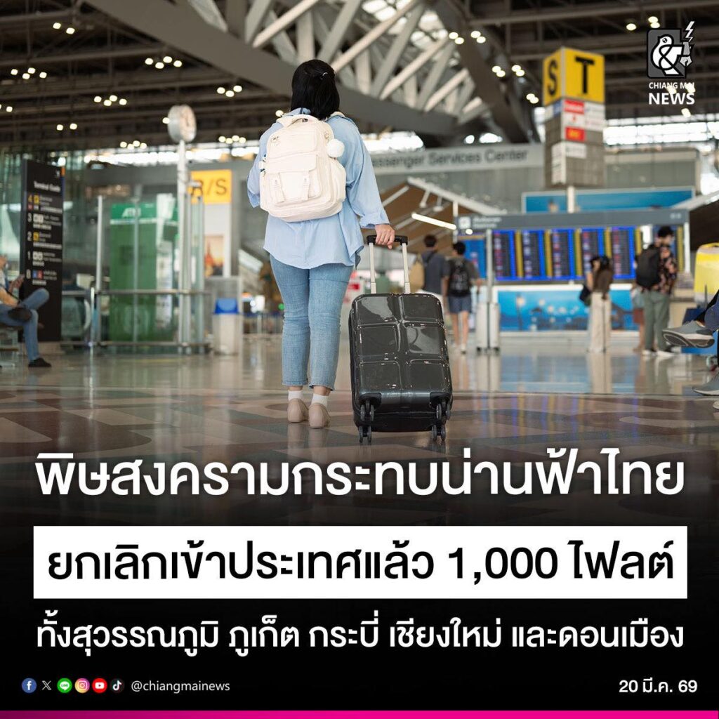 タイ航空局は中東の戦争によりタイへの航空便が既に1,000便以上キャンセルになったと発表しました。スワンナプーム、プーケット、チェンマイ、ドンムアンなどの空港が影響を受けています。