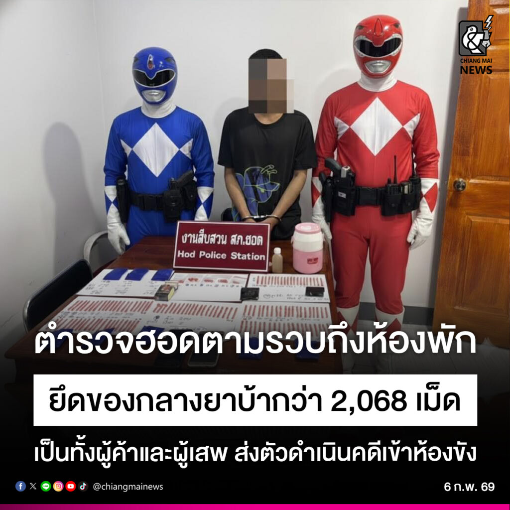 ホート警察はホート郡バーンターン地区の宿泊施設で容疑者の男を逮捕しました。証拠品として覚醒剤2,068錠を押収しました。容疑者が使用者であり売人でもあることも判明し、法律に基づいて送検しました。