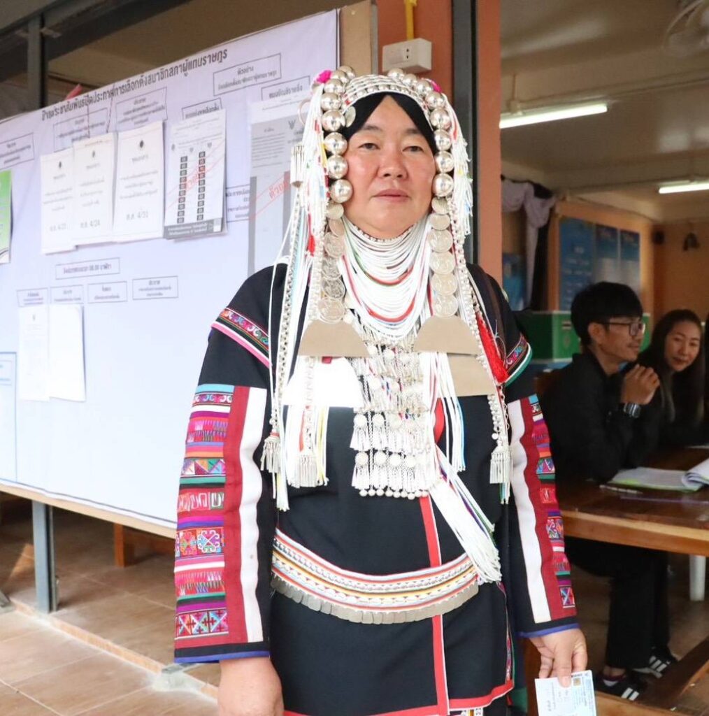 チェンマイ県、メーホーンソン県、チェンラーイ県、の山岳民族の人々が、民族衣装をまとい、朝から下院議員選挙の投票所に来ており、投票所は活気に満ちています。辺境の地からの声を届けにきています。
