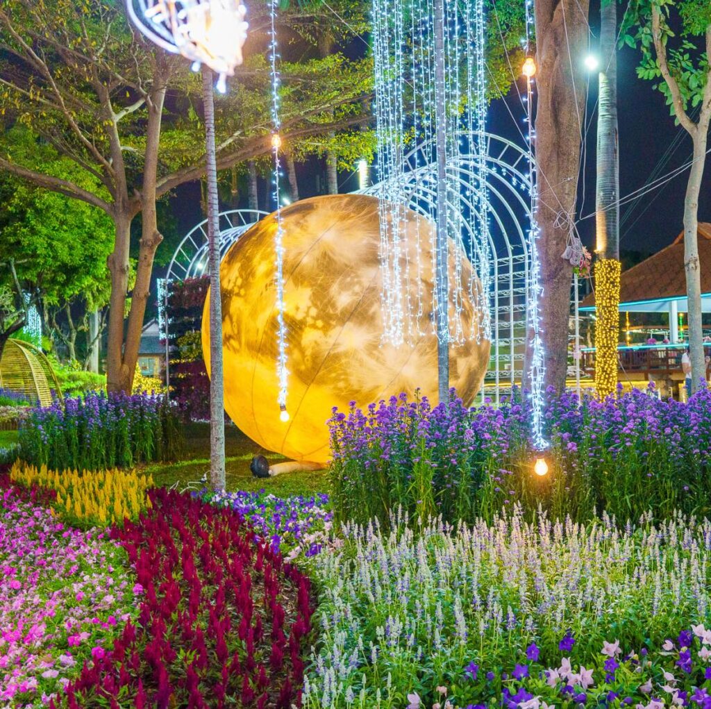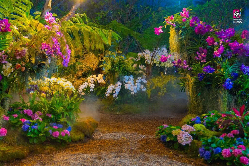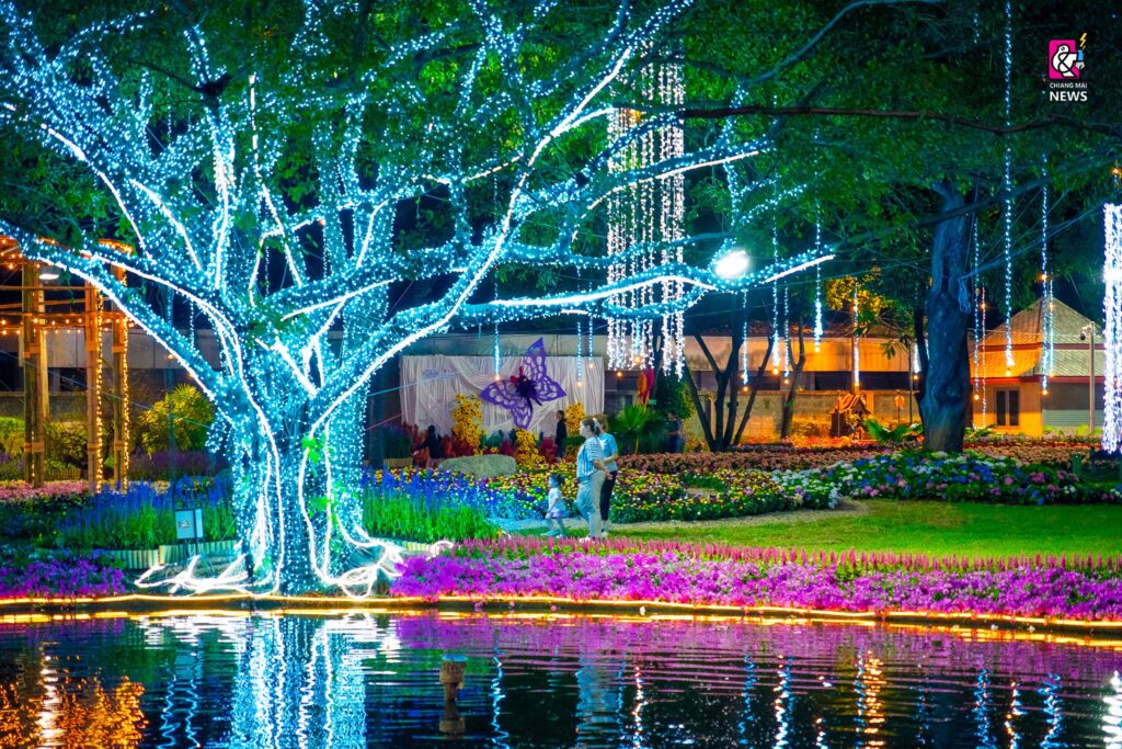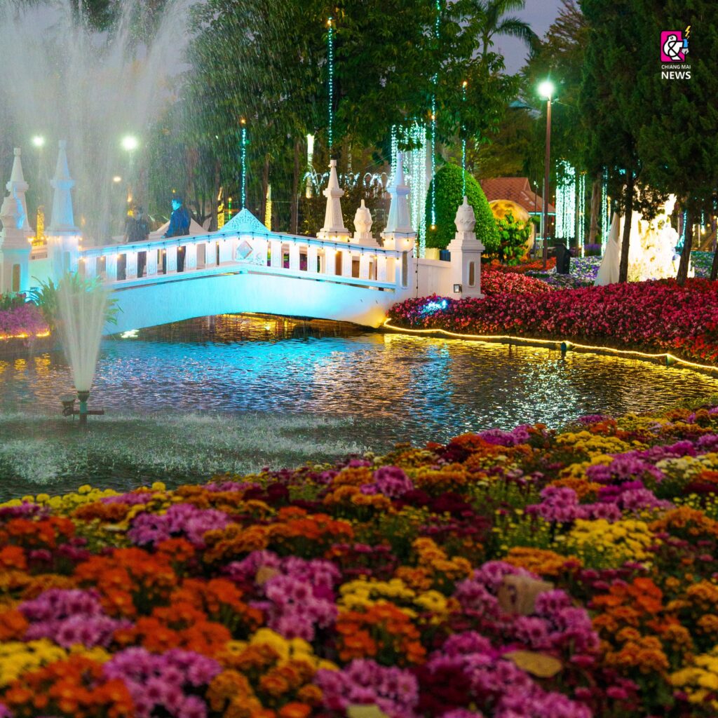 今年のチェンマイ・花と観葉植物祭りは、光と音の演出も盛大に、街中が花で一杯になります。