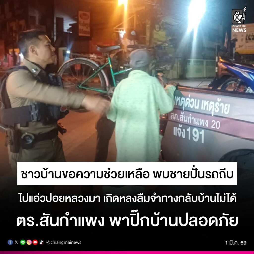 サンカンペーン警察署はブアッククロックマー寺のポイルアン大祭に自転車で出かけた男性が帰り道を忘れて迷っているとの通報を受け、警察官を派遣し、家まで安全に送り届けました。