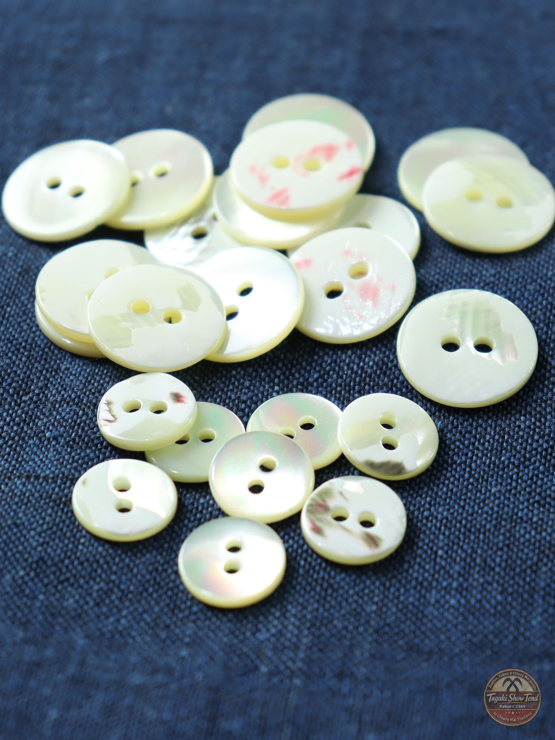 *白い高瀬貝を使った厚手の2つ穴ボタンです。